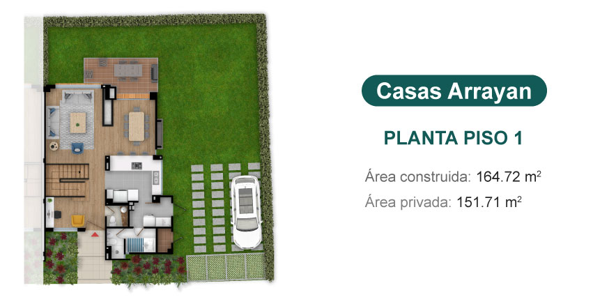 OIKOS Savanna Monterrey presenta las casas Arrayán con un área construida de 164.72 m2 y área privada construida de 151.71 m2, con zona común de uso exclusivo desde 156 m2 en promedio. Es un conjunto exclusivo de casas en Cajicá con un desarrollo urbanístico que integra el paisaje natural de la Sabana rodeado de un proyecto de vivienda ideal para familias que desean una vida única, tranquila y diferente.